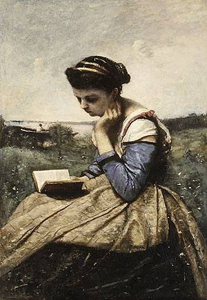 A Woman Reading 1869 background repainted at a later date