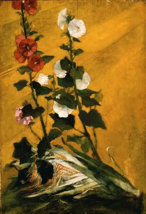Hollyhocks and Corn Decorative Panel 1865