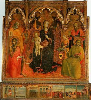 Madonna and Child Enthroned with Four Angels and SS John the Baptist Peter Francis and Paul