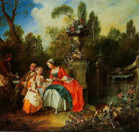 A Ladies In A Garden Taking Coffee With Some Children 1742